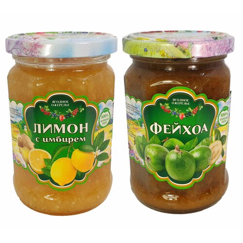 Лимон с имбирем / Фейхоа протертые с сахаром "Ягодное ожерелье", 2 баночки по 340г