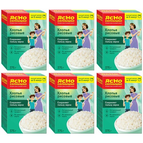 Ясно солнышко Хлопья рисовые требующие варки, 375 г, 6 уп