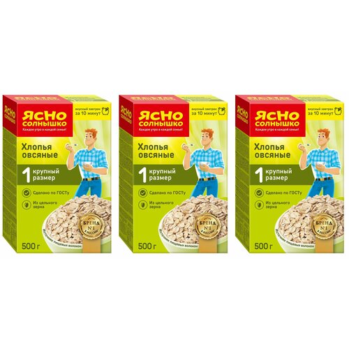 Ясно солнышко Хлопья овсяные Экстра №1, 500 г, 3 уп