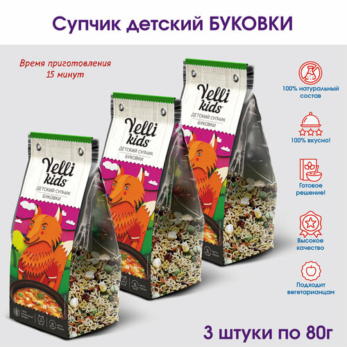 Суп детский Yelli "Буковки", 3 упаковки по 80г.