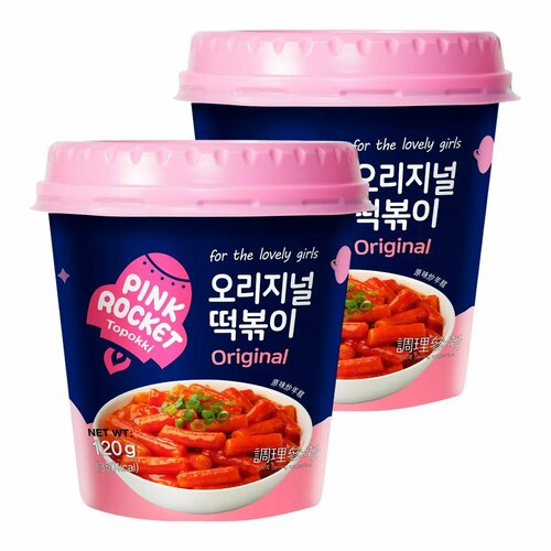 Рисовые клёцки ттокпокки Pink Rocket оригинальные YoungPoong, стакан 120 г х 2 шт