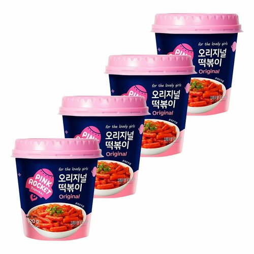 Рисовые клёцки ттокпокки Pink Rocket оригинальные YoungPoong, стакан 120 г х 4 шт