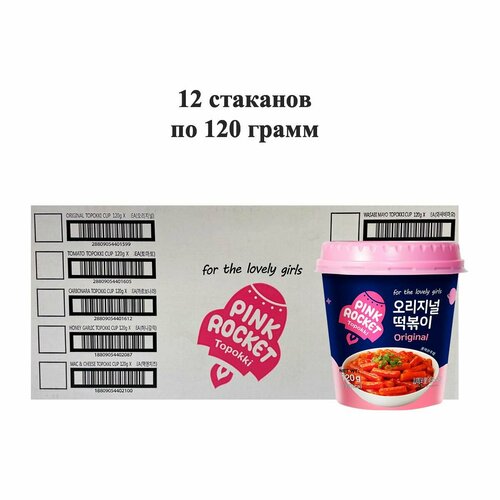Рисовые клёцки ттокпокки Pink Rocket оригинальные YoungPoong, стакан 120 г х 12 шт