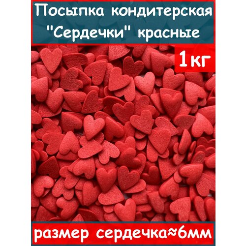 Посыпка кондитерская "Сердечки" красные, 1 кг