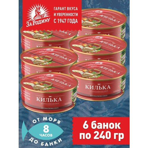 Килька балтийская в томатном соусе, За Родину 6 банок по 240 грамм