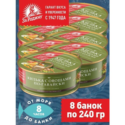 Килька балтийская с овощами в томатном соусе по-гавайски, За Родину 8 банок по 240 грамм