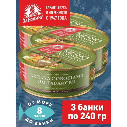 Килька балтийская с овощами в томатном соусе по-гавайски, За Родину 3 банки по 240 грамм