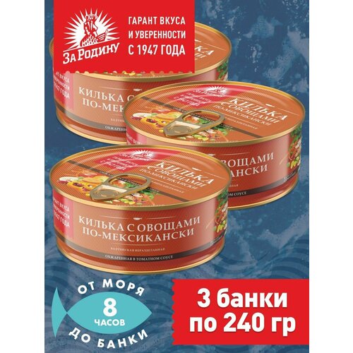 Килька балтийская с овощами по-мексикански, За Родину 3 банки по 240 грамм