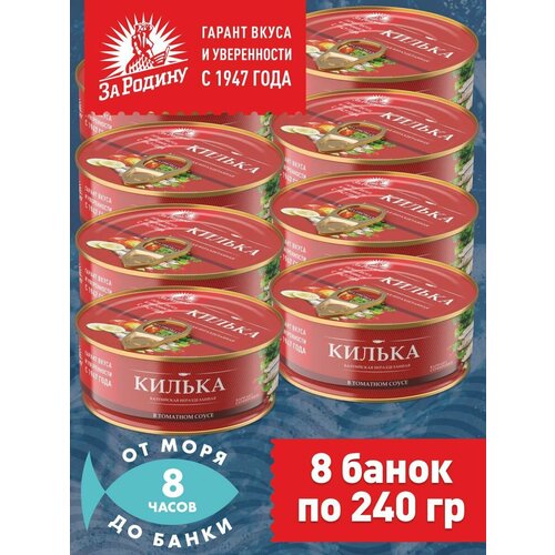 Килька балтийская в томатном соусе, За Родину 8 банок по 240 грамм
