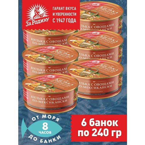 Килька балтийская с овощами по-мексикански, За Родину 6 банок по 240 грамм