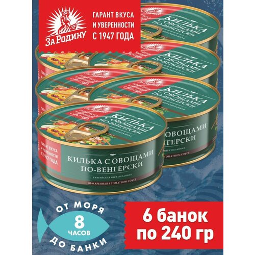 Килька балтийская с овощами в томатном соусе по-венгерски, За Родину 6 банок по 240 грамм