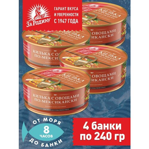 Килька балтийская с овощами по-мексикански, За Родину 4 банки по 240 грамм