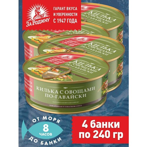 Килька балтийская с овощами в томатном соусе по-гавайски, За Родину 4 банки по 240 грамм