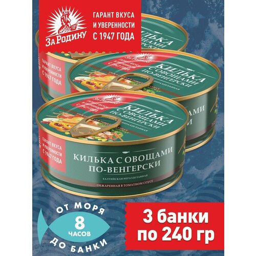 Килька балтийская с овощами в томатном соусе по-венгерски, За Родину 3 банки по 240 грамм