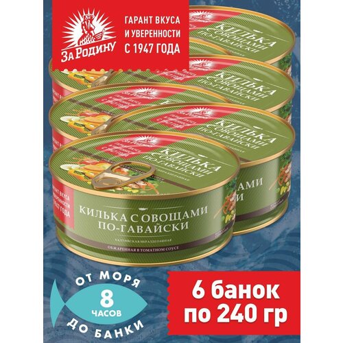Килька балтийская с овощами в томатном соусе по-гавайски, За Родину 6 банок по 240 грамм