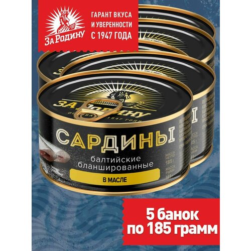 Сардины балтийские бланшированные в масле За Родину, 5 банок по 185 грамм