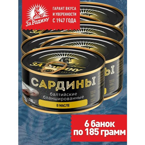 Сардины балтийские бланшированные в масле За Родину, 6 банок по 185 грамм