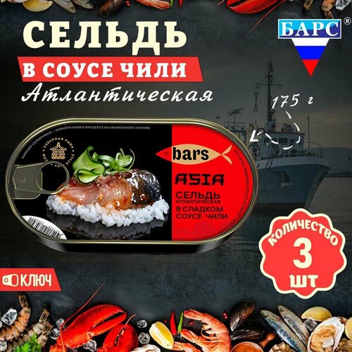 Сельдь в сладком соусе Чили, атлантическая (филе), 3 шт. по 175 г