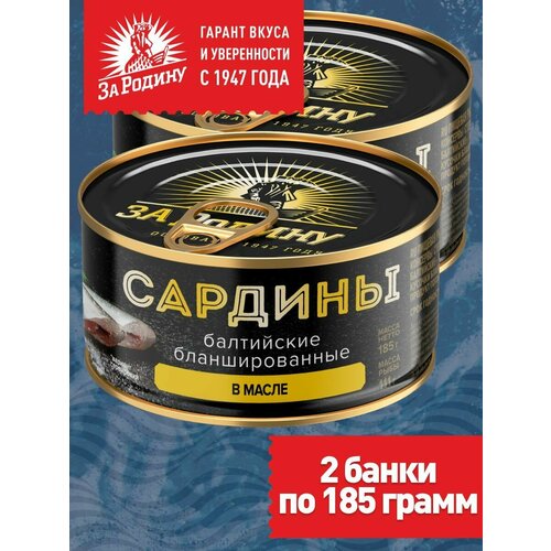 Сардины балтийские бланшированные в масле За Родину, 2 банки по 185 грамм