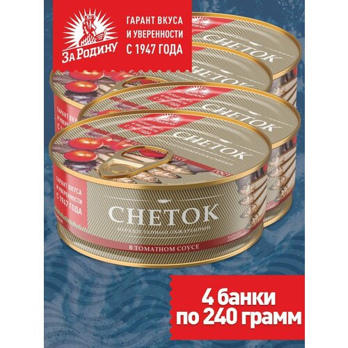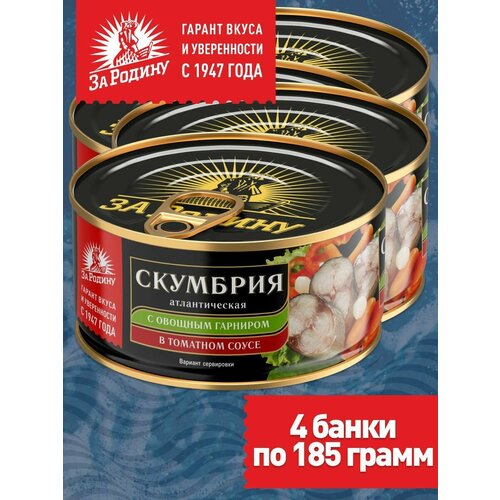 Скумбрия атлантическая с овощным гарниром в томатном соусе За Родину, 4 банки по 185 грамм