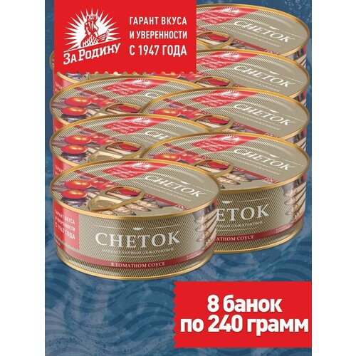 Скумбрия атлантическая с овощным гарниром в томатном соусе За Родину, 8 банок по 185 грамм