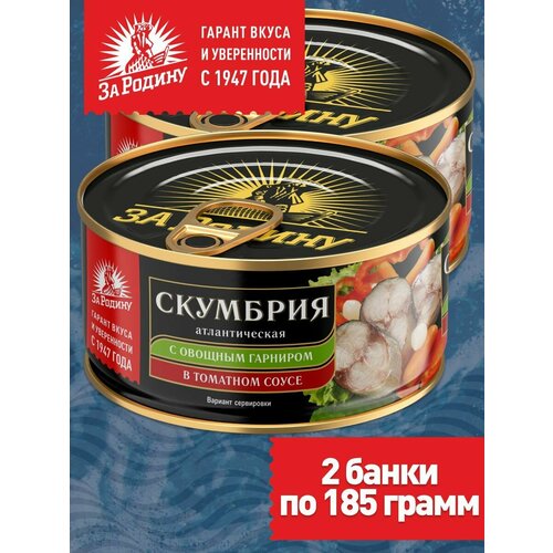 Скумбрия атлантическая с овощным гарниром в томатном соусе За Родину, 2 банки по 185 грамм