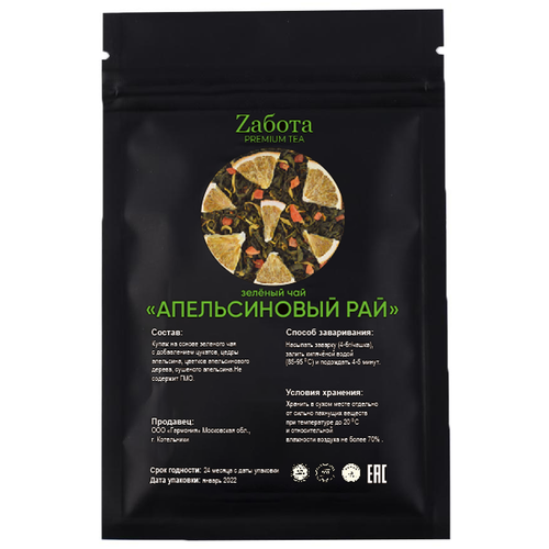 Чай листовой Premium, зеленый чай Апельсиновый, рассыпной, Zабота, чай для похудения в подарочной упаковке