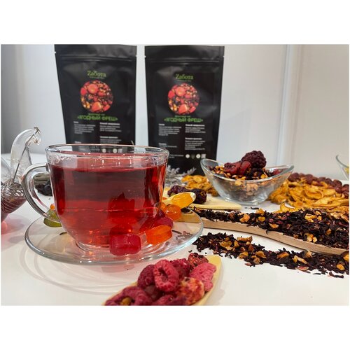 Premium чай фруктовый Ягодный фреш, Zабота, рассыпной чай листовой черный с фруктами, ягодами, ассорти, подарок женщине, мужчине 100 гр.