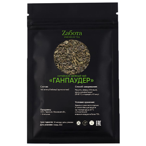 Чай листовой Premium, зеленый чай в/с Ганпаудер, рассыпной, Zабота, чай для похудения в подарочной упаковке