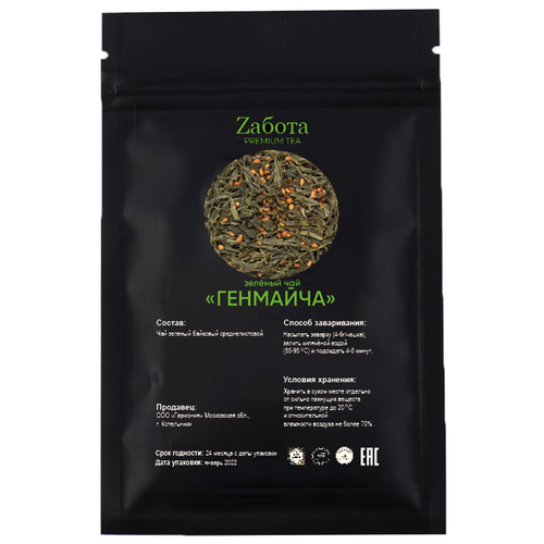 Чай листовой Premium, зеленый чай Генмайча, рассыпной, Zабота, чай для похудения в подарочной упаковке
