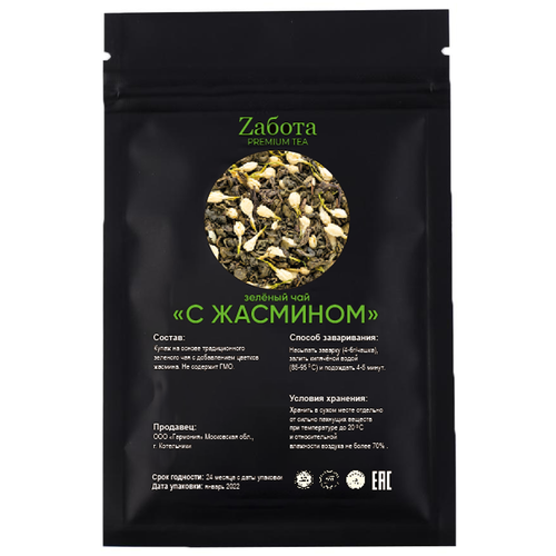 Чай листовой Premium, зеленый чай Жасмин, рассыпной, Zабота, чай для похудения в подарочной упаковке