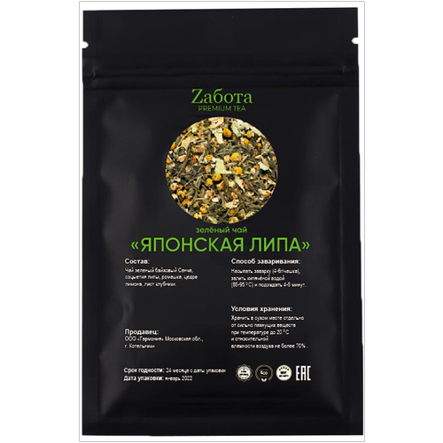 Чай листовой Premium, зеленый чай Японская липа, рассыпной, Zабота, чай для похудения в подарочной упаковке
