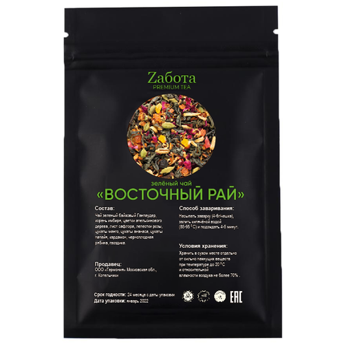 Чай листовой Premium, зеленый чай Восточный рай, рассыпной, Zабота, чай для похудения в подарочной упаковке