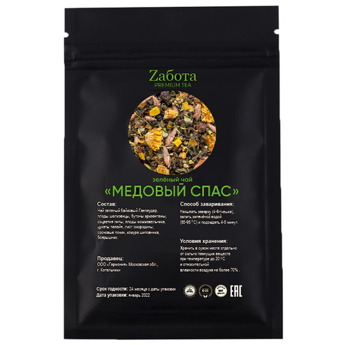 Чай листовой Premium, зеленый чай Медовый спас, рассыпной, Zабота, чай для похудения в подарочной упаковке
