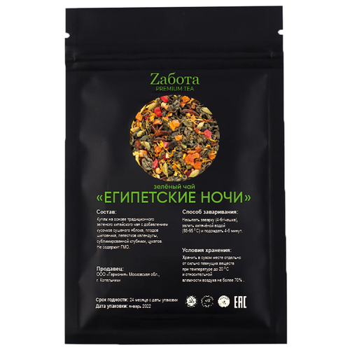 Чай листовой Premium, зеленый чай Египетские ночи, рассыпной, Zабота, чай для похудения в подарочной упаковке