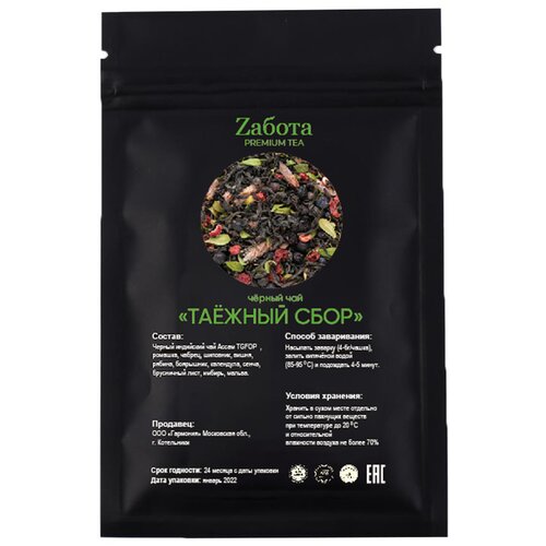 Чай листовой Premium, черный чай Таежный сбор, рассыпной, Zабота, чай с добавками в подарочной упаковке, подарок женщине, мужчине 100 гр.