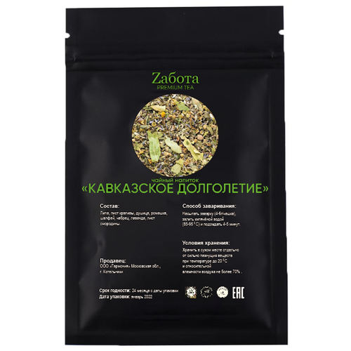 Чайный травяной напиток Кавказское долголетие, Premium чай Zабота, рассыпной, травяной сбор для иммунитета, подарок женщине, мужчине 100 гр.