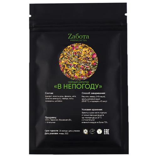 Чайный травяной напиток В непогоду, Premium чай Zабота, рассыпной, травяной сбор для иммунитета, подарок женщине, мужчине 100 гр.