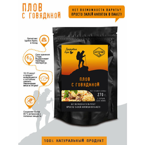Плов Здоровая еда с говядиной без варки сублимированное блюдо быстрого приготовления для похода, 70 г