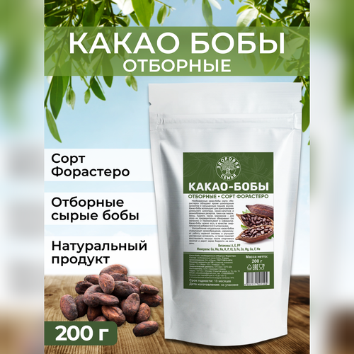 Какао-бобы, сорт Форастеро, Здоровая Семья, сырые необжаренные отборные, 200 г