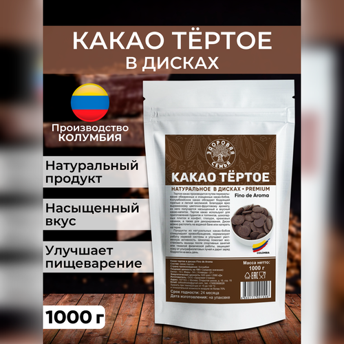 Какао-тертое натуральное в дисках Колумбия, премиум, Здоровая Семья, 1 кг (1000 г)