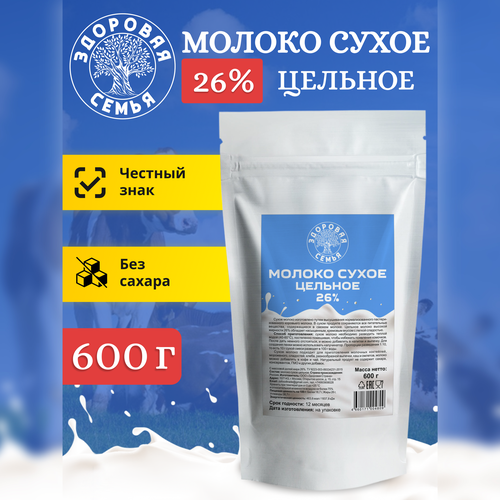 Молоко сухое Здоровая Семья цельное 26% ГОСТ, 600 г