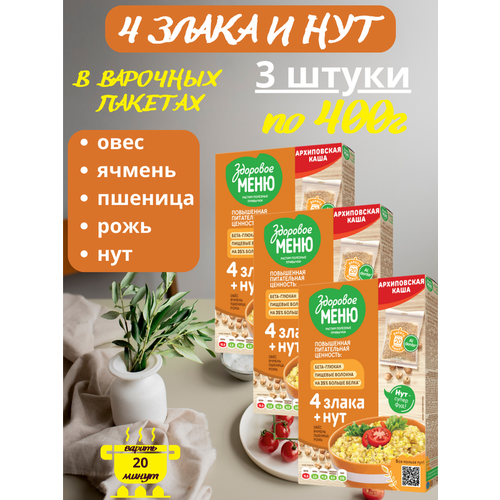Набор 3 шт. Смесь круп дробленых "Архиповская каша": 4 злака с нутом "Здоровое меню" 400г в варочных пакетах