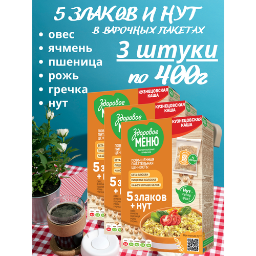 Набор 3 шт. Смесь круп дробленых "Кузнецовская каша": 5 злаков с нутом "Здоровое меню" 400г в варочных пакетах