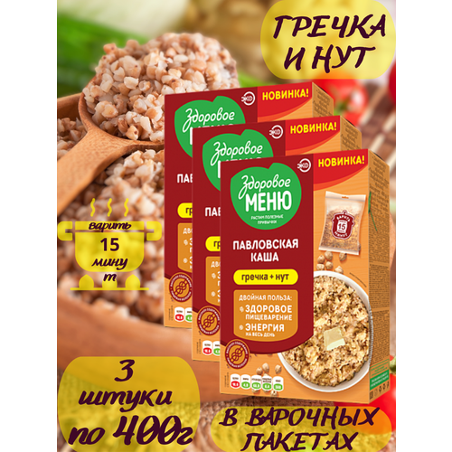 Набор 3 шт. "Павловская каша": гречневая с нутом "Здоровое меню" 400г