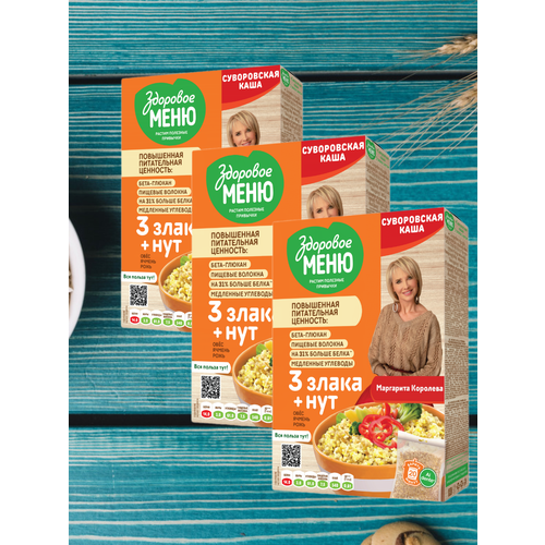 Хлопья Здоровое меню Суворовская каша 3 злака с нутом 400 г в варочных пакетиках. Набор 3 шт.