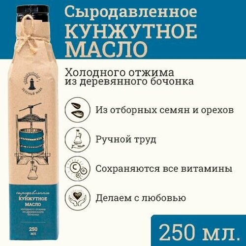 Кунжутное сыродавленное масло Зeлeный мaяк 250мл первого холодного отжима, растительное пищевое нерафинированное