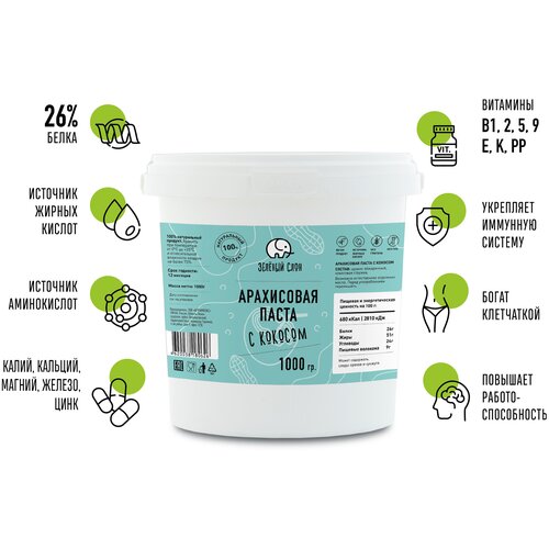 Арахисовая паста без сахара кокосовая Зеленый Слон 1 кг
