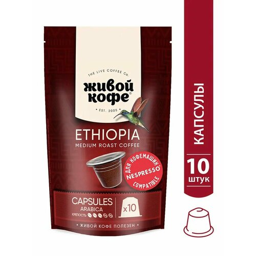 Капсулы Живой кофе Ethiopia Sidamo для кофемашины Nespresso (неспрессо)50 гр (10 капсул по 5 гр)