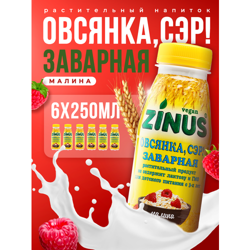 Zinus "Овсянка, Сэр!". Заварной овсяный напиток без молока с Малина, 250г/ПЭТ/спайка 6 штук